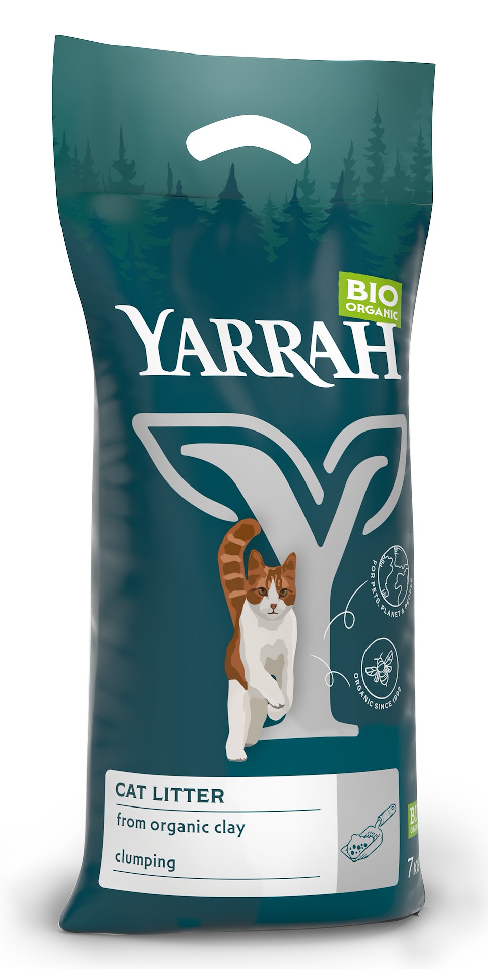 Zbrylający żwirek. Bez dodatków chemicznych, zapachowych i detergentów. Jeden kilogram zbrylającego żwirku dla kotów Yarrah jest równie wydajny jak 2 kg konwencjonalnego żwirku!