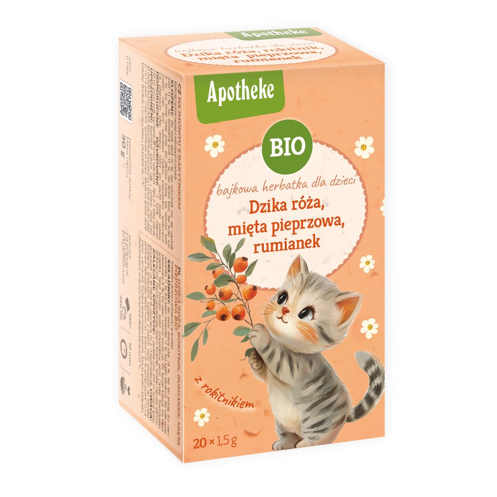 HERBATKA BAJKOWA DLA DZIECI – DZIKA RÓŻA, MIĘTA PIEPRZOWA, RUMIANEK I ROKITNIK BIO (20 x 1,5 g) 30 g – APOTHEKE