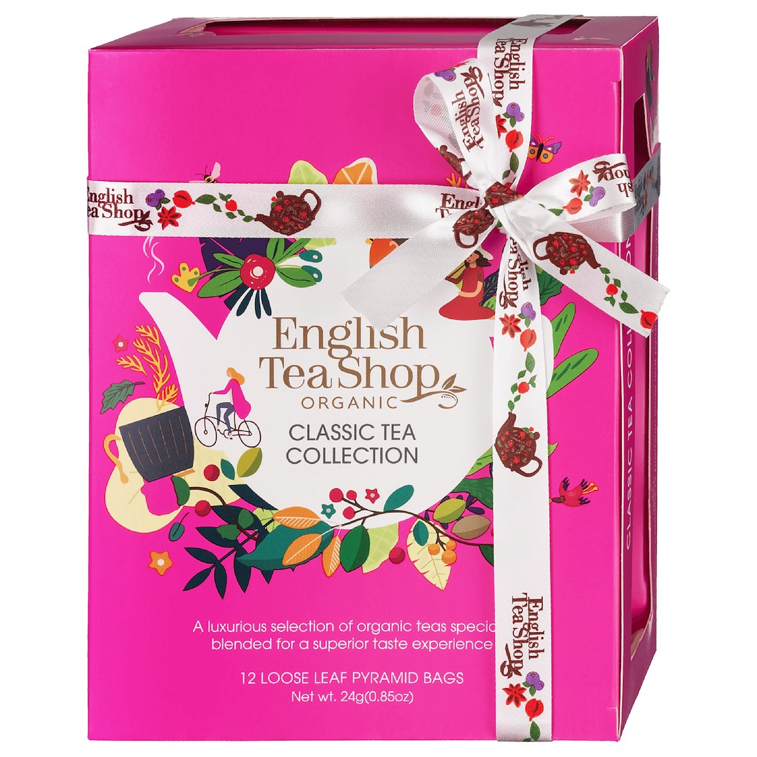 KOLEKCJA HERBAT I HERBATEK KLASYCZNYCH BIO PIRAMIDKI (CLASSIC RÓŻOWE – 12 SMAKÓW) (12 x 2 g) 24 g – ENGLISH TEA SHOP ORGANIC