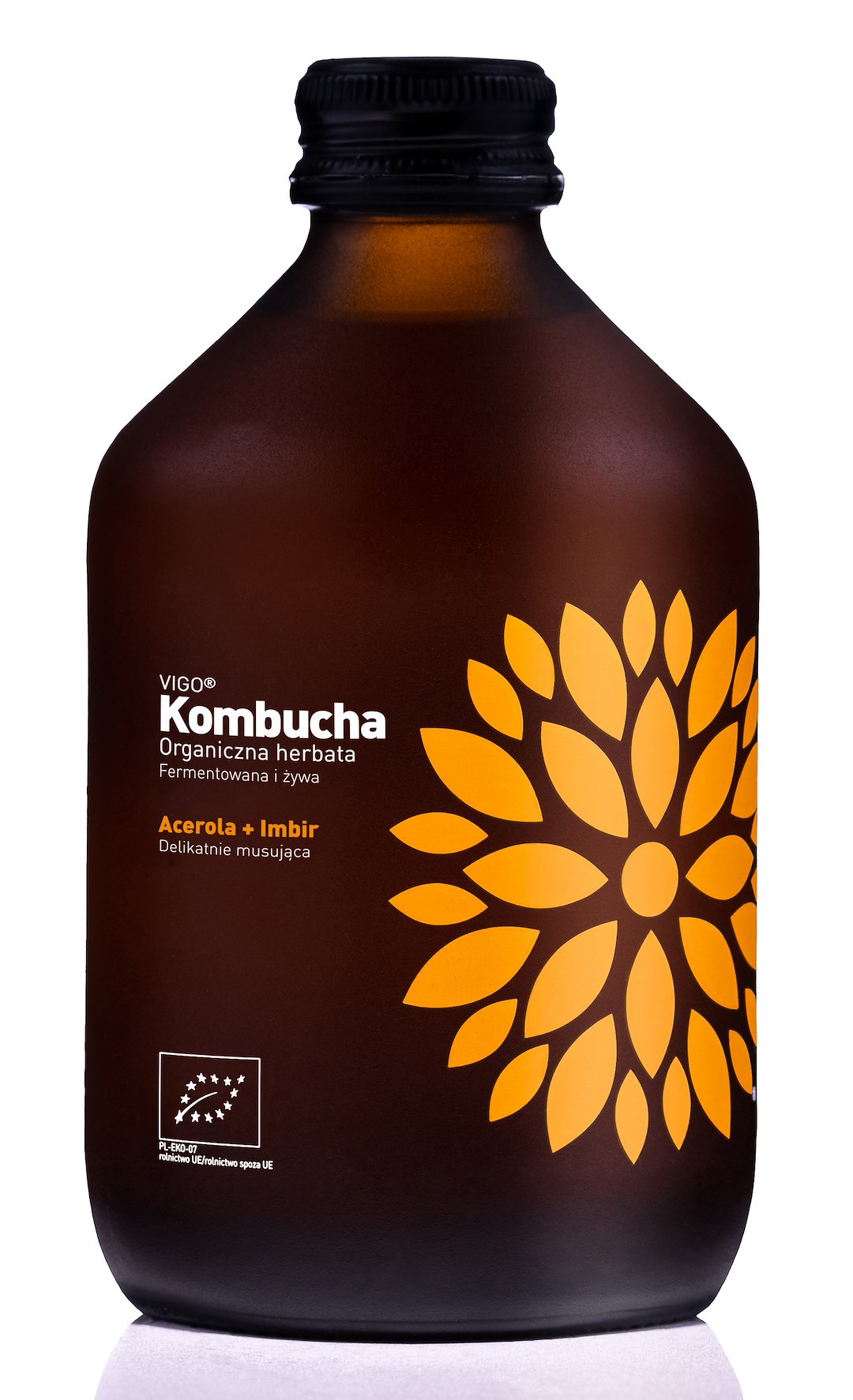 KOMBUCHA Z ACEROLĄ I IMBIREM BEZGLUTENOWA BIO 330 ml – VIGO