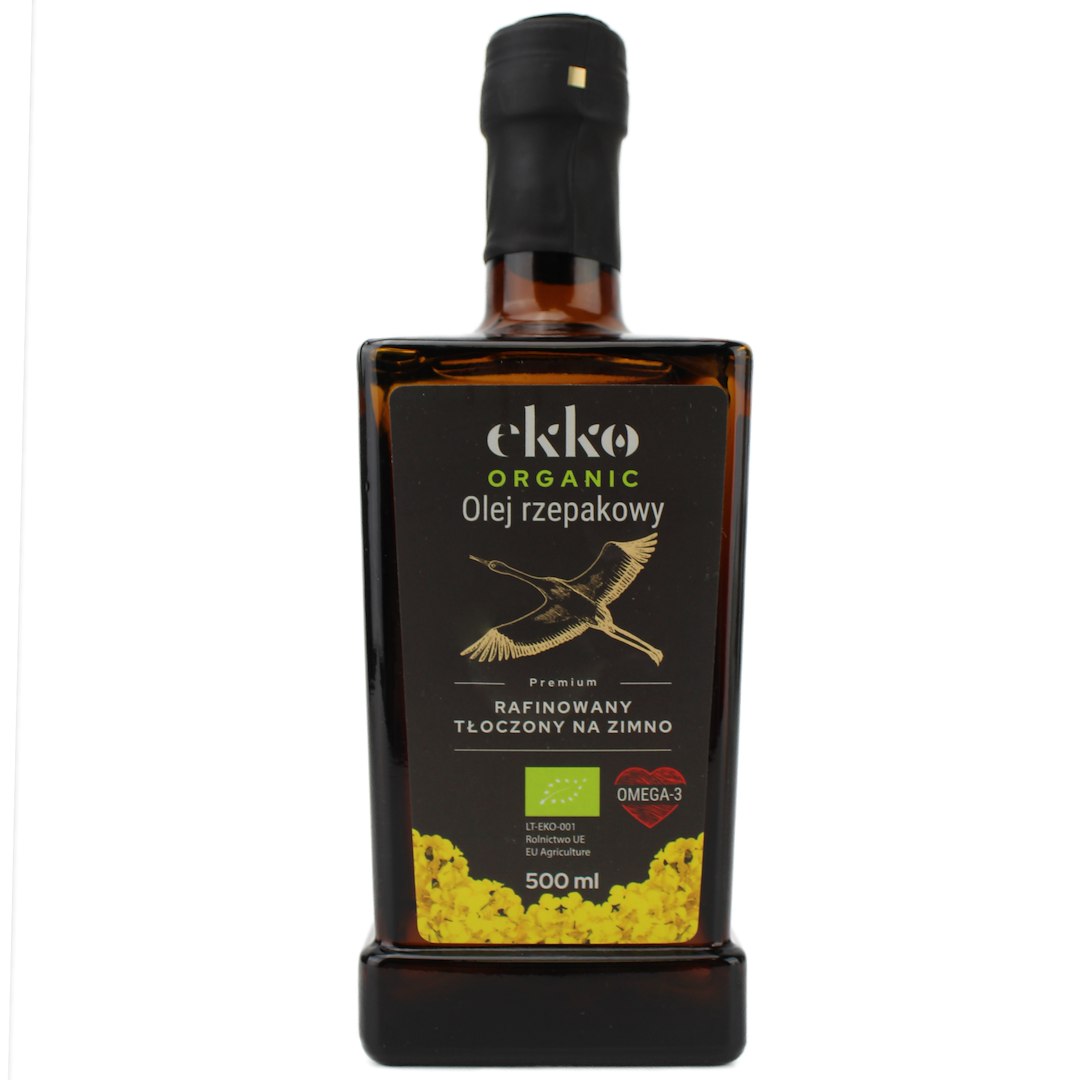 OLEJ RZEPAKOWY DO GOTOWANIA I SMAŻENIA TŁOCZONY NA ZIMNO OMEGA-3 BIO 500 ml – EKKO (PREMIUM)