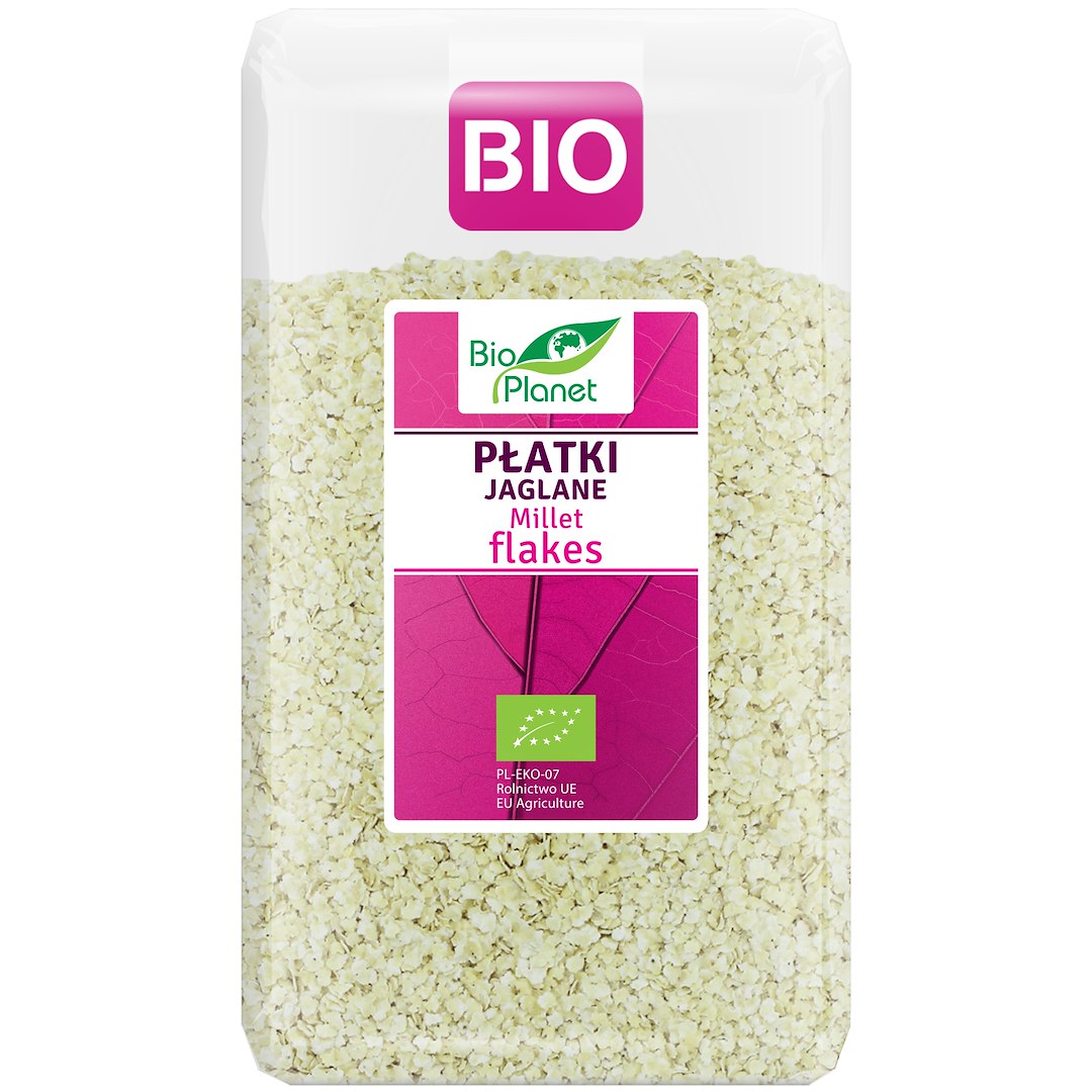 Ekologiczne płatki jaglane uzyskuje się z gniecionych ziaren prosa. Płatki jaglane to doskonała propozycja na codzienne śniadanie. Najlepiej smakują z dodatkiem jogurtu, napoju zbożowego oraz z owocami.