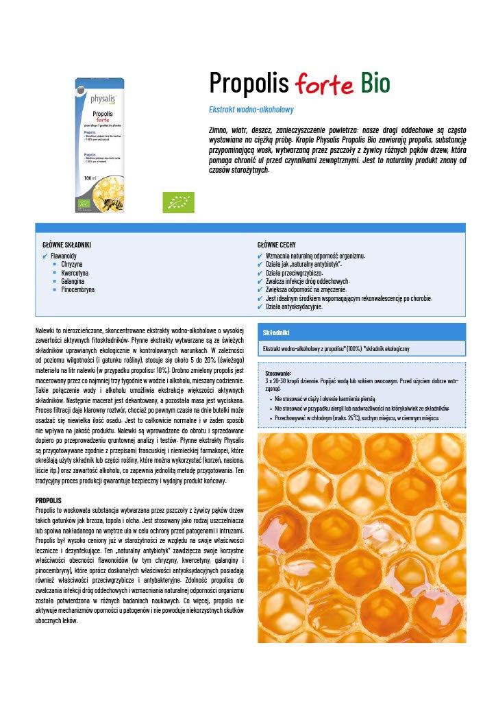 PROPOLIS FORTE EKSTRAKT W KROPLACH BIO 100 ml – PHYSALIS