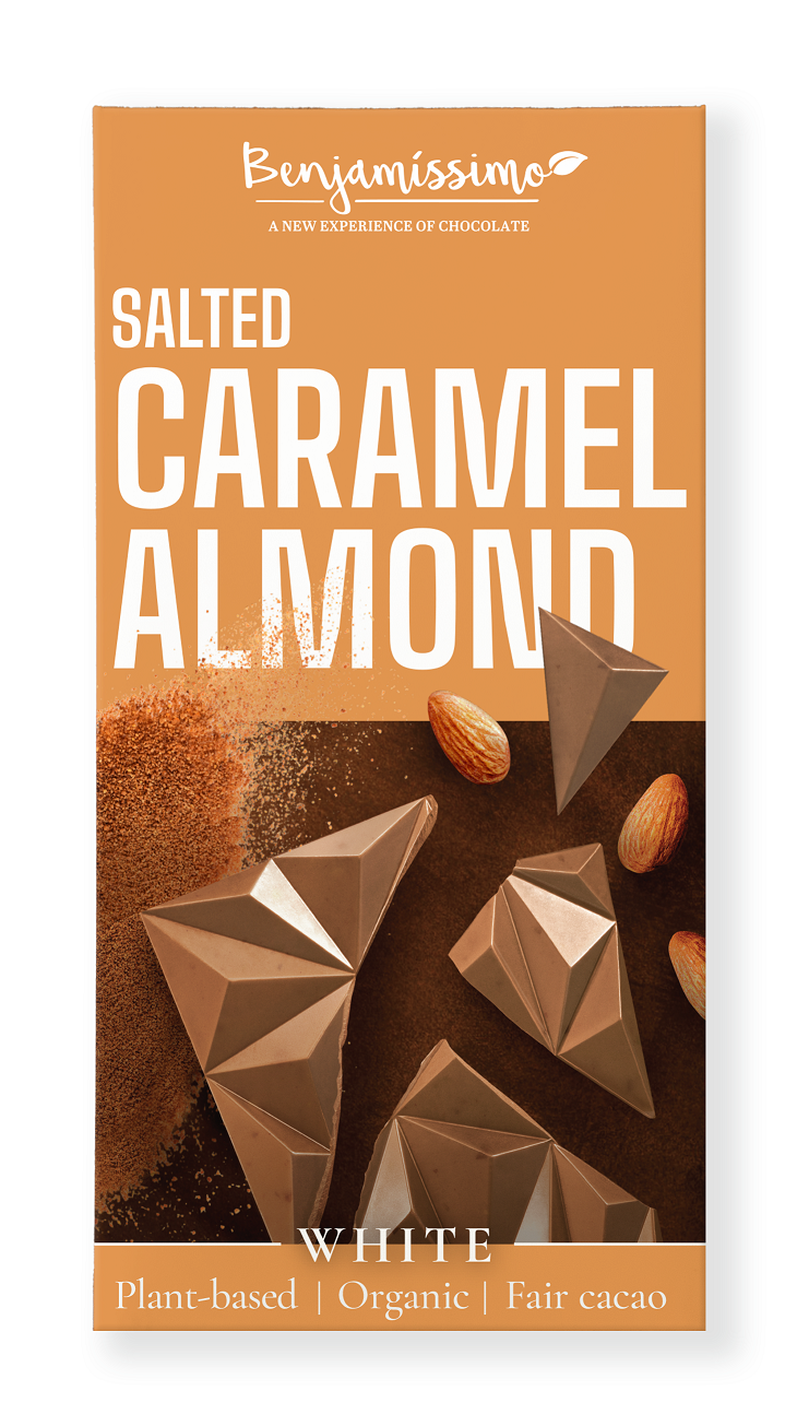 TABLICZKA KAKAOWA SŁONY KARMEL – MIGDAŁY BEZGLUTENOWA BIO 60 g – BENJAMISSIMO
